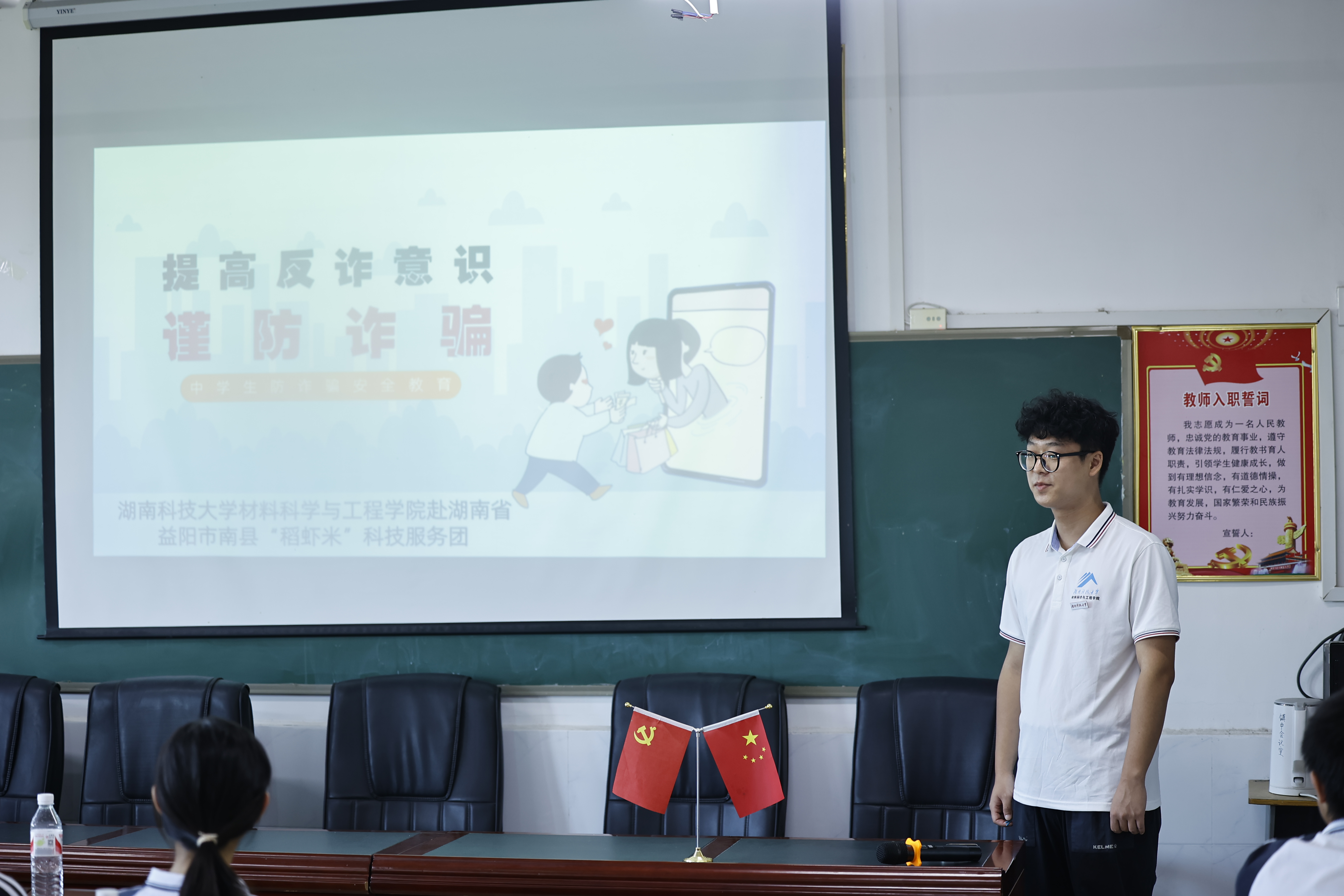 青少年是国家的未来,处于成长发展阶段的中学生对外界环境认知和应对能力较弱,青少年安全教育显得尤为重要。7月12日,我院暑期“三下乡”社会实践团在益阳市南县三仙湖镇初级中学开展了“防‘溺’于未然,平安永相伴”“提高反诈意识,谨防诈骗”为主题的暑期安全教育,提升同学们的安全意识、自我保护意识以及对危险的判断和应对能力。